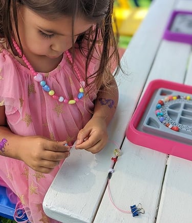 A grupė: Akinių grandinėlės, vėrinio, apyrankių, raktų paskabukų vėrimas